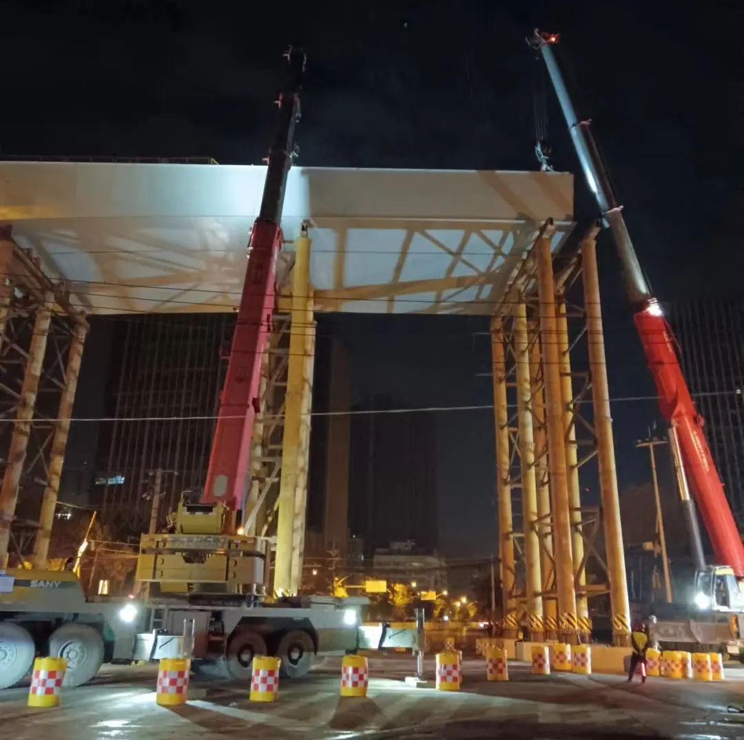 項(xiàng)目直擊|南泥灣大道改造工程古田二路110KV段鋼箱梁吊裝完成!